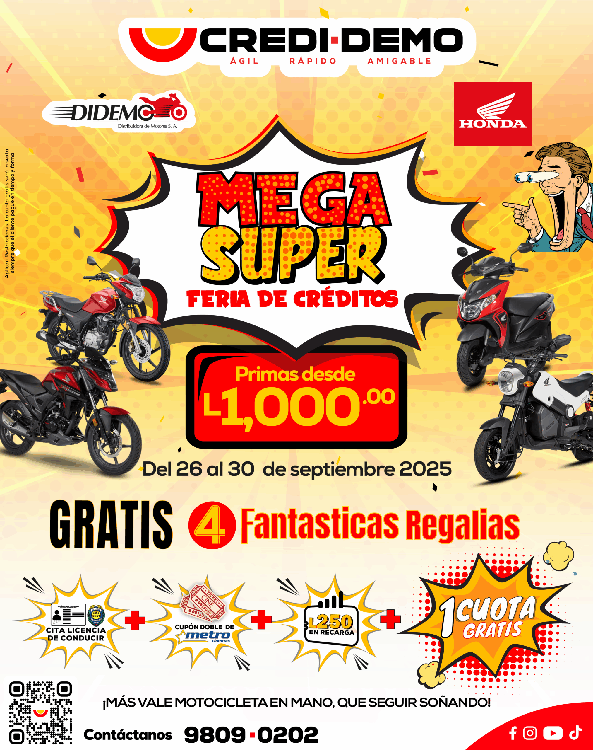 Nota: Clientes con residencia o menores de 18 años contactar al correo clientes@credidemo.hn o llamar al 9809-0202.