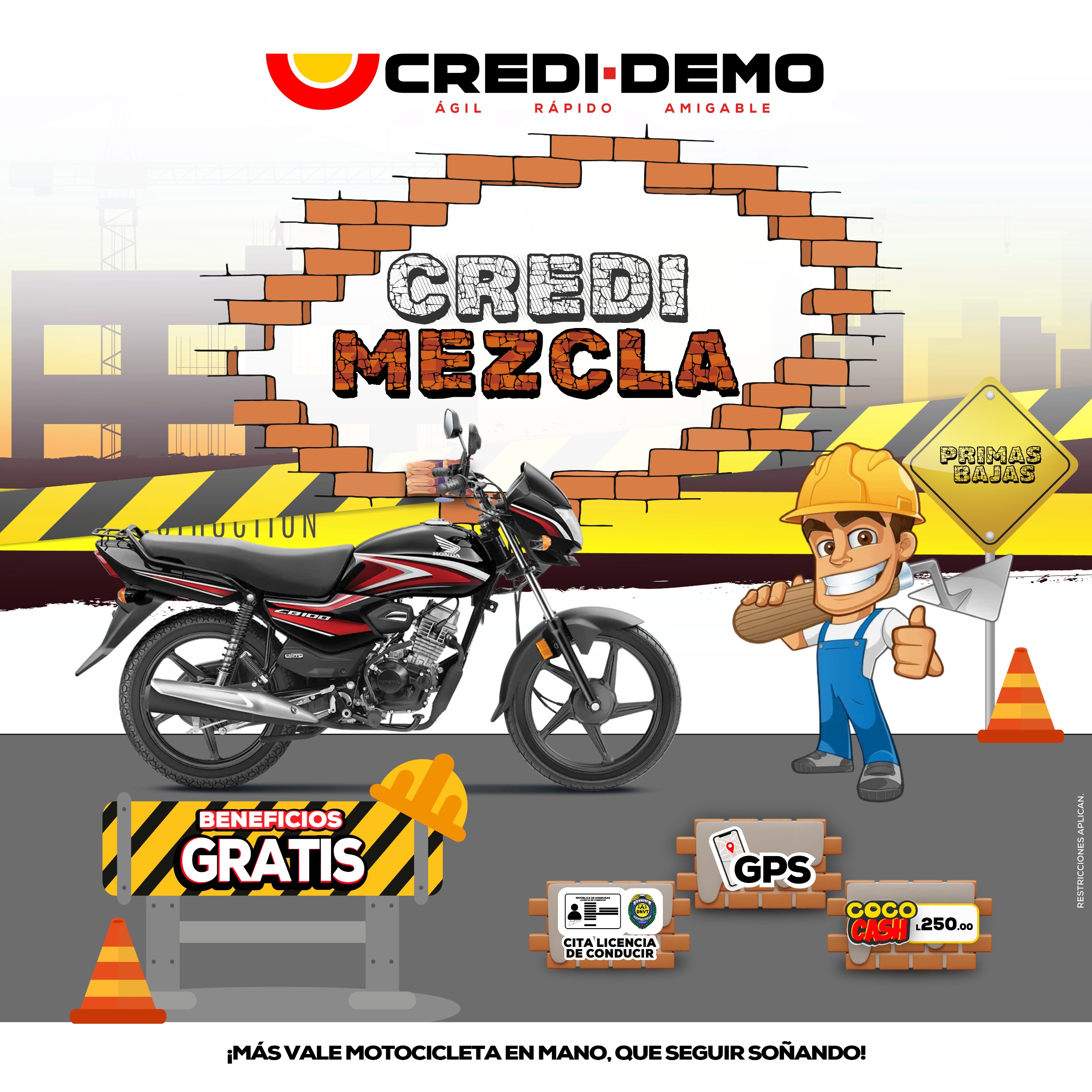 🛠️ ¡CREDIMEZCLA está en construcción… y lista para ti! 🛠️Llevate tu moto Honda al crédito con condiciones macizas y premios GRATIS:
